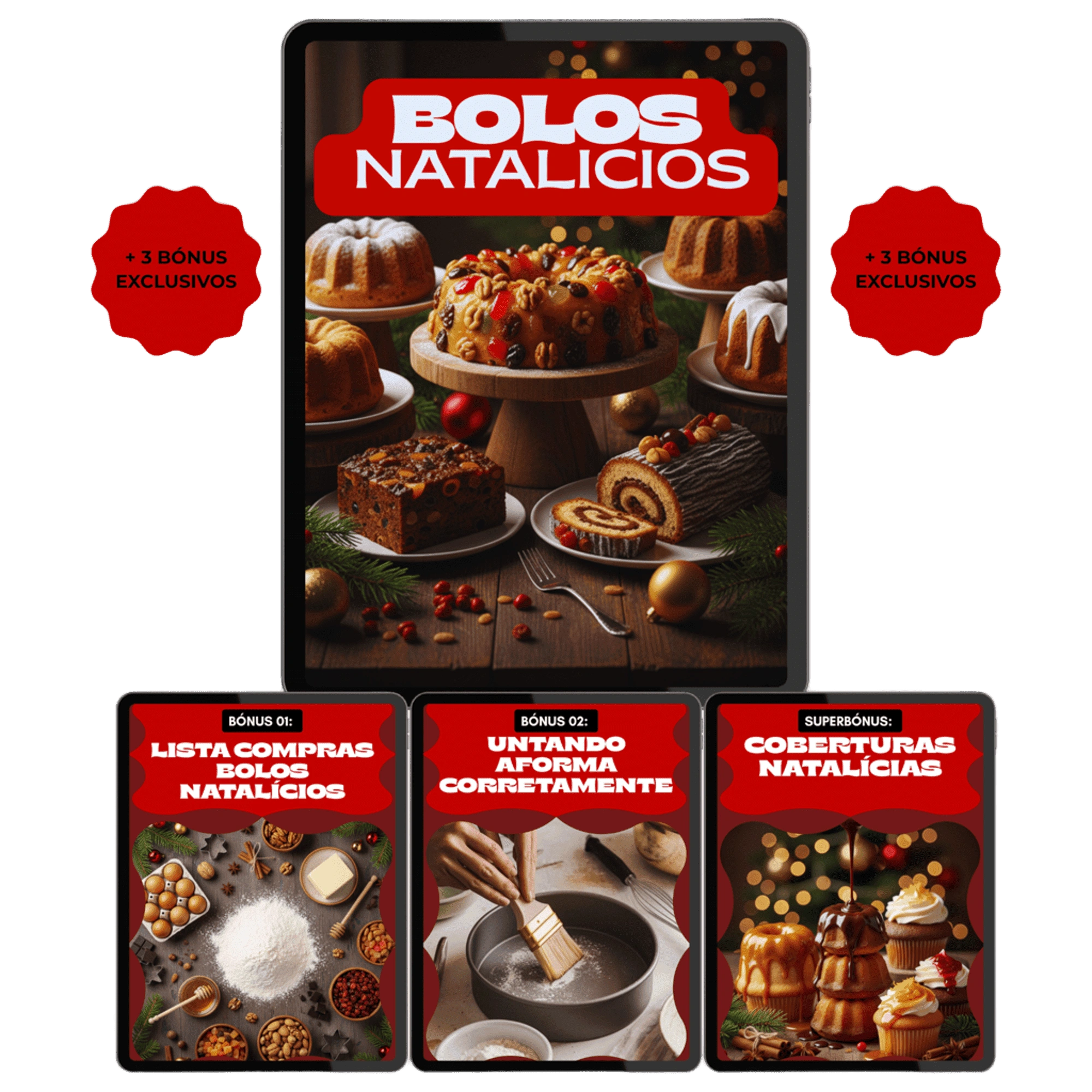 Esta é a tua oportunidade de preparar bolos natalícios tradicionais, fofos e cheios de sabor, mesmo sem experiência na cozinha, com receitas simples e resultados garantidos.